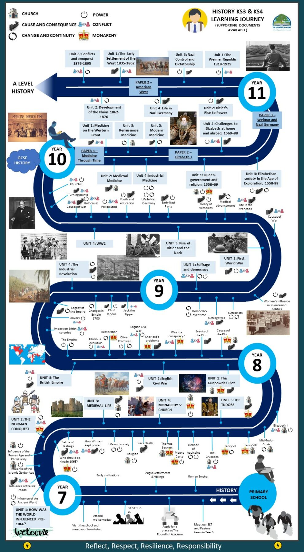 Unit 1 – How the world was influenced up to 1066As pupils first experience of secondary History they will look at the various influences from around the world which led to the development of the Medieval period in Britain and ultimately 1066 which is the subsequent unit of work. Pupils will identify how power changed throughout Ancient Egypt and Ancient Greece by learning about the starting point of democracy and how different societies began to develop. They also have an opportunity to identify the significance of the Silk Roads and how this created slavery but also enhanced trade and technology across the world. Following this, pupils also examine the impact of religion on the world and the spread of Islam and Christianity and how this influences the world and particularly Britain up to 1066.